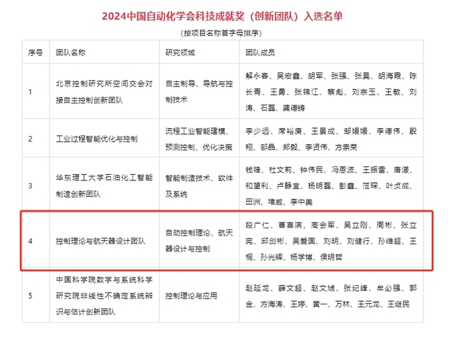 近日,2024中国自动化学会科技成就奖评审结果揭晓。yl34511官网控制理论与航天器设计团队荣获2024中国自动化学会科技成就奖(创新团队)。此次共评选出科技成就奖(创新团队)5项、科技成就奖(个人)2项。